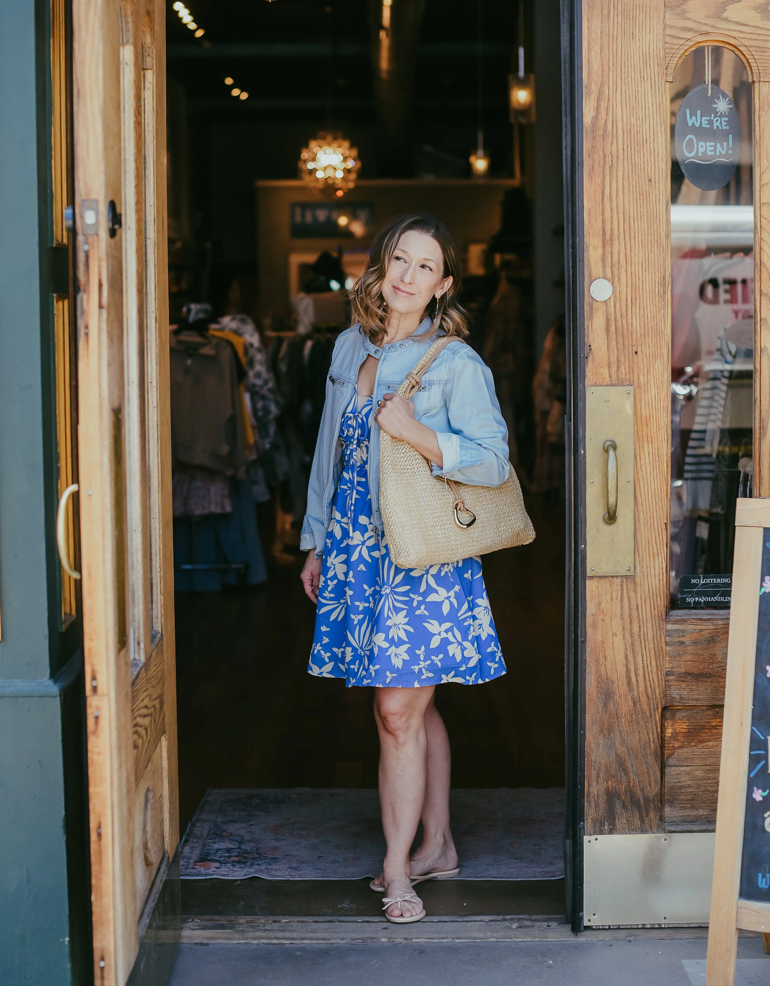 Before moving to Durango and becoming a mom, I lived in Houston, Dallas, England, Boston and LA. The amount of dresses and heels I had in my closet would make a Kardashian jealous! But then I moved to Durango and became a mom, and (reluctantly) slimmed down my shoe and dress collection, but I have never lost my flair for dressing up. I’m that girl walking down Main Avenue in heels all dressed up on a Tuesday night to go on a date night with my hubby. Life is short—you do you—dress up! I’d say my style has become a mix of bohemian and tailored. I’m almost always in jeans, boots or sandals, tanks or tees, and a statement coat or jacket. And I LOVE hats! Never daunted by sporting one. I’m really into the statement thing now that I’m over 45.